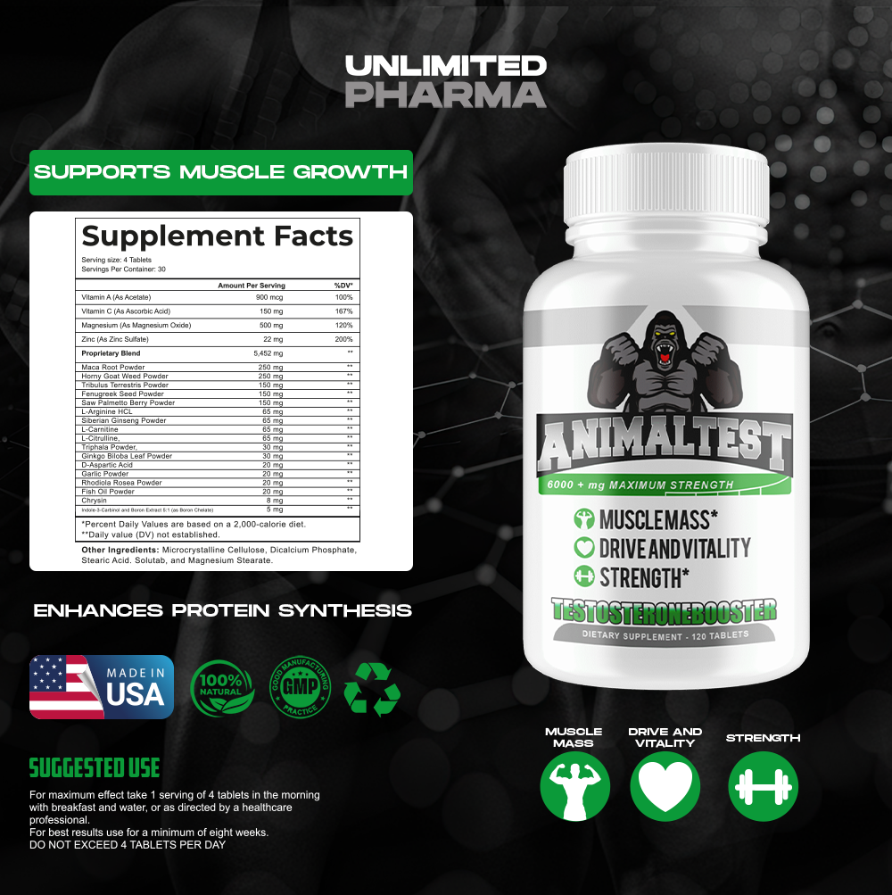 Animal Test is a comprehensive, legal hypertrophic supplement designed for serious strength athletes and bodybuilders. It works by supporting both testosterone production and its utilization, creating an optimal anabolic internal environment to help you build muscle and strength like never before.